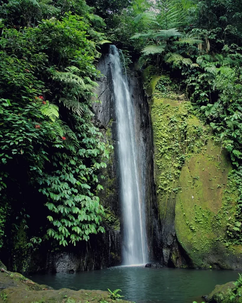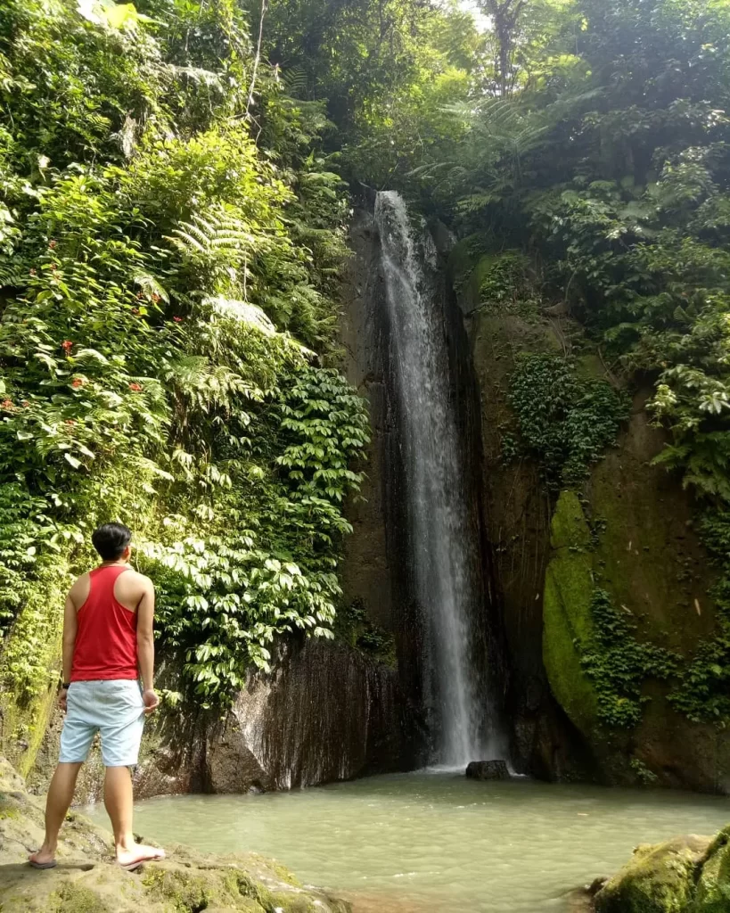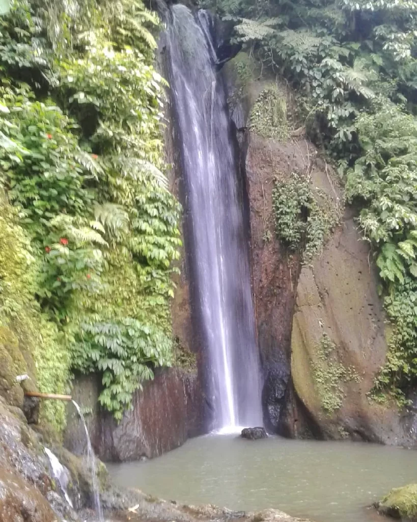 Dikelilingi oleh rimbunnya pohon dan suasana lembap yang segar, air terjun ini jatuh dengan anggun dari tebing setinggi kurang lebih 20 meter. Alirannya tidak terlalu deras, pas untuk duduk-duduk di bebatuan sambil menenangkan pikiran.