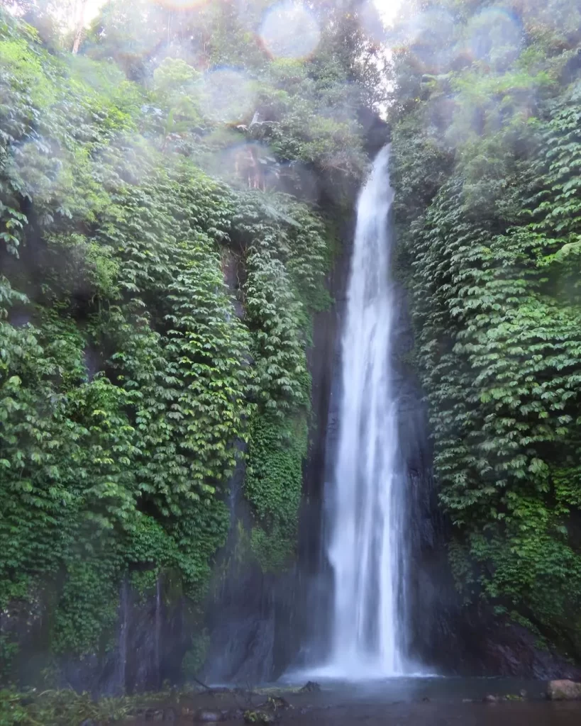 Airnya jatuh dari tebing tinggi, menciptakan kabut halus yang menyegarkan. Di sekitarnya, tanaman tropis tumbuh liar. Tempat ini sangat cocok buat kamu yang rindu suasana hutan tropis asli, jauh dari tempat-tempat wisata yang terlalu ramai.